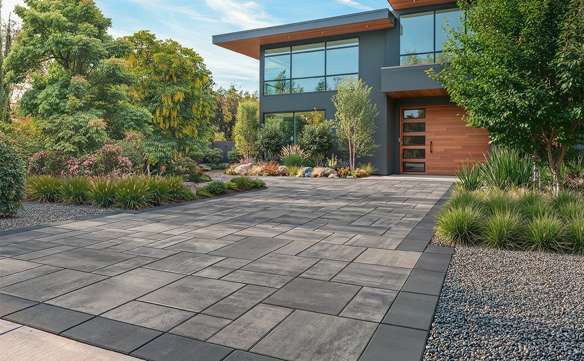 Learn MoreThese slightly textured modern three-piece paving stones are made for bold & beautiful contemporary driveways. Their smooth surface and ArmorTec finish give those clean lines, rich color, and strong durability for heavy use. It works exceptionally well for driveways, but can also be used for patios, walkways, and pool surrounds.