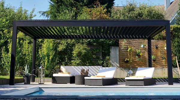 Learn More- Aluminum pergola w/ remote controlled rotating louvers, providing protection against rain & sun